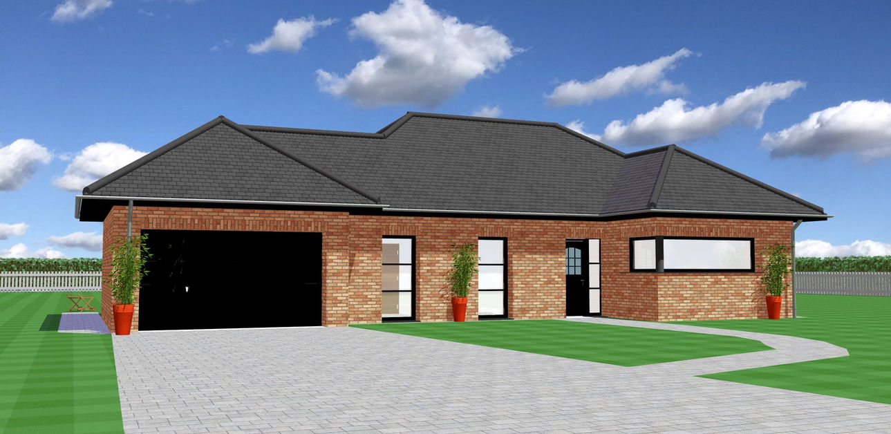 Maison de Plain-pied en Briques avec toiture 4 pans.